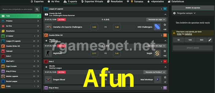 A aposta Afun oferece aos jogadores a experiência mais conveniente de apostas em eSports!